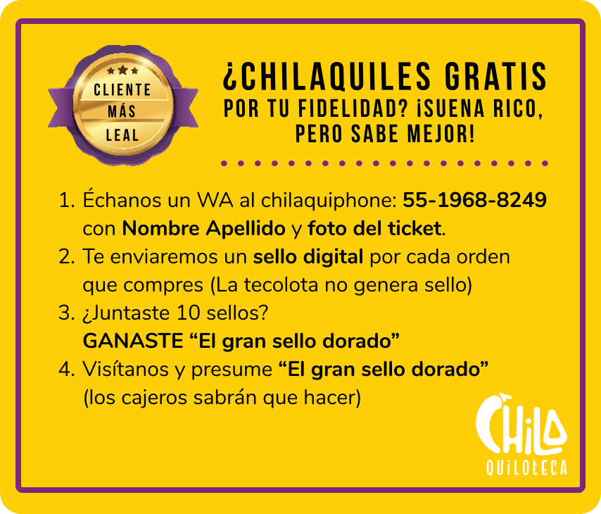 Llena el formulario y recibe toda la información para convertirte en parte de la familia Chilaquiloteca. Te enseñamos cómo llevar nuestro concepto a tu ciudad con todo el sabor y el flow que nos hace únicos.